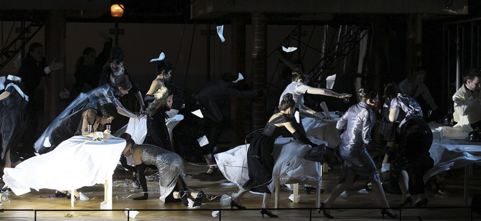 Историю Летучего Голландца, проклятого и жаждущего избавления, режиссер Василий Бархатов превратил в захватывающий триллер. Действие он перенес в XX век, главного героя, которого может спасти только преданная любовь женщины, превратил в актера. Сента влюбляется в него, увидев на экране, и сразу же узнает своего кумира в загадочном незнакомце, появившемся в приморском городке. Режиссер активно пользуется приемами киноязыка, в частности, виртуозно делит «на кадры» сценическое пространство. Так, пляжная кабинка оказывается кинозалом или номером отеля. С помощью черно-белых кинопроекций зрители могут находиться сразу в нескольких временных измерениях. Спектакль получился непредсказуемым и свежим, как музыка Вагнера, насквозь пронизанная соленым морским ветром.